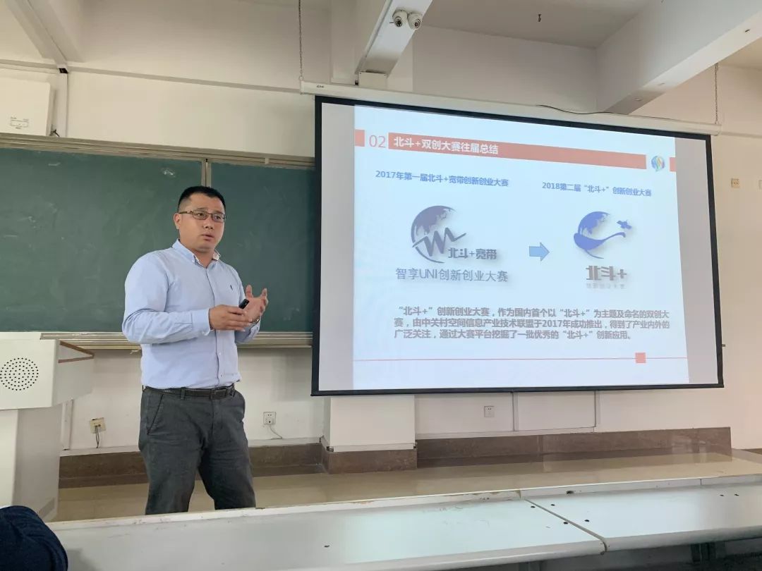 聯盟副秘書長馬廣浩向到場同學們詳細介紹了2019第三屆“北斗+”雙創大賽的辦賽思路和前兩屆大賽成果,鼓勵學生充分運用所學知識,努力創新實踐,積極通過參加大賽鍛煉自己、推動成果落地。學校專業學院相關領導表示,聯盟舉辦的“北斗+”雙創大賽,有助于帶動高校學生的創新創業熱情,能夠助力學生站在新的平臺上眺望產業未來。